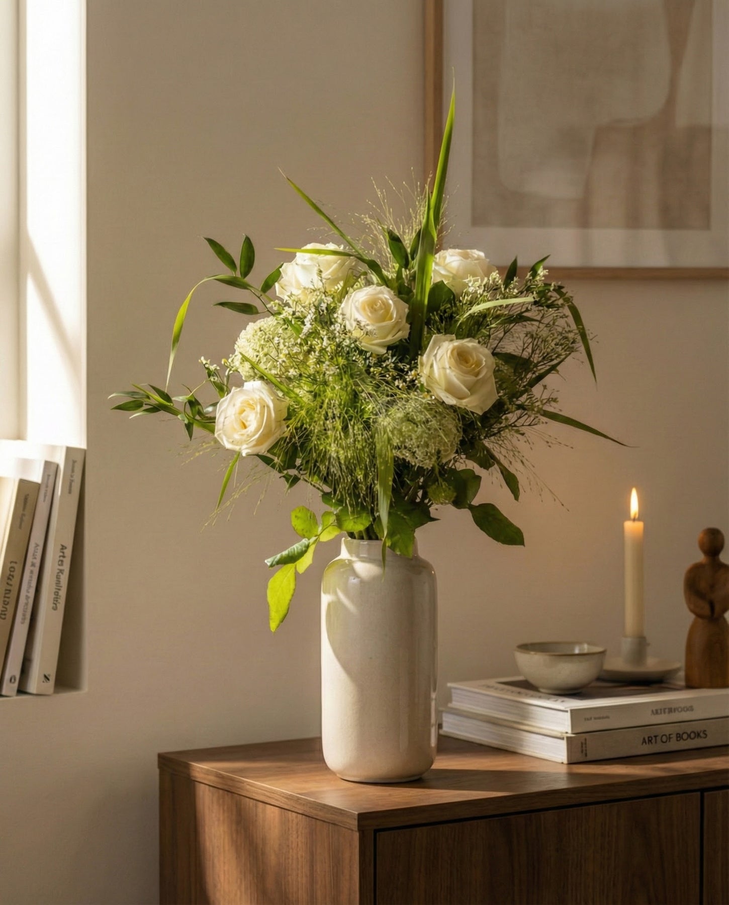 Fehlen dir die richtigen Worte? 🤍 Dieser weiße Blumenstrauß sagt deinem Lieblingsmenschen oder deiner alten Bekanntschaft, dass du an sie denkst – liebevoll und leise, selbst aus weiter Ferne. 🫶🏻