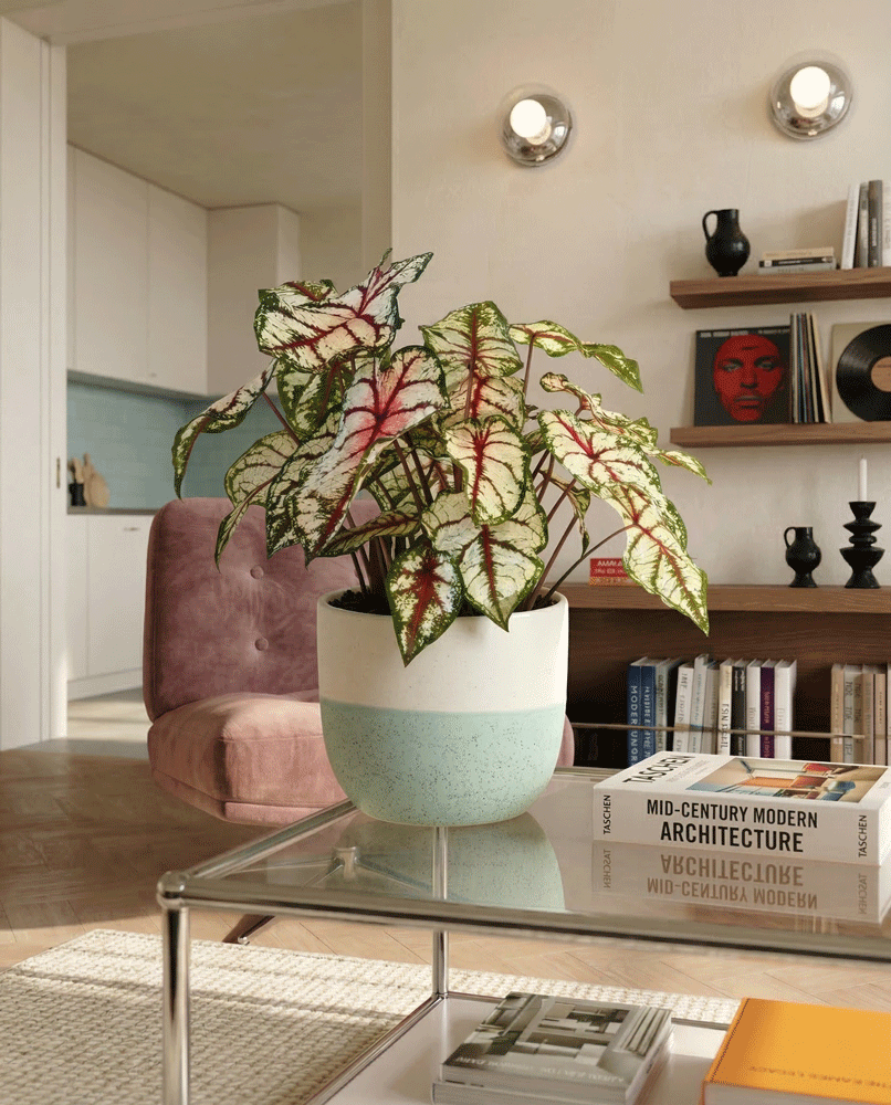 👉🏼 Caladium 'Bottle Rocket', in einem passenden Innentopf