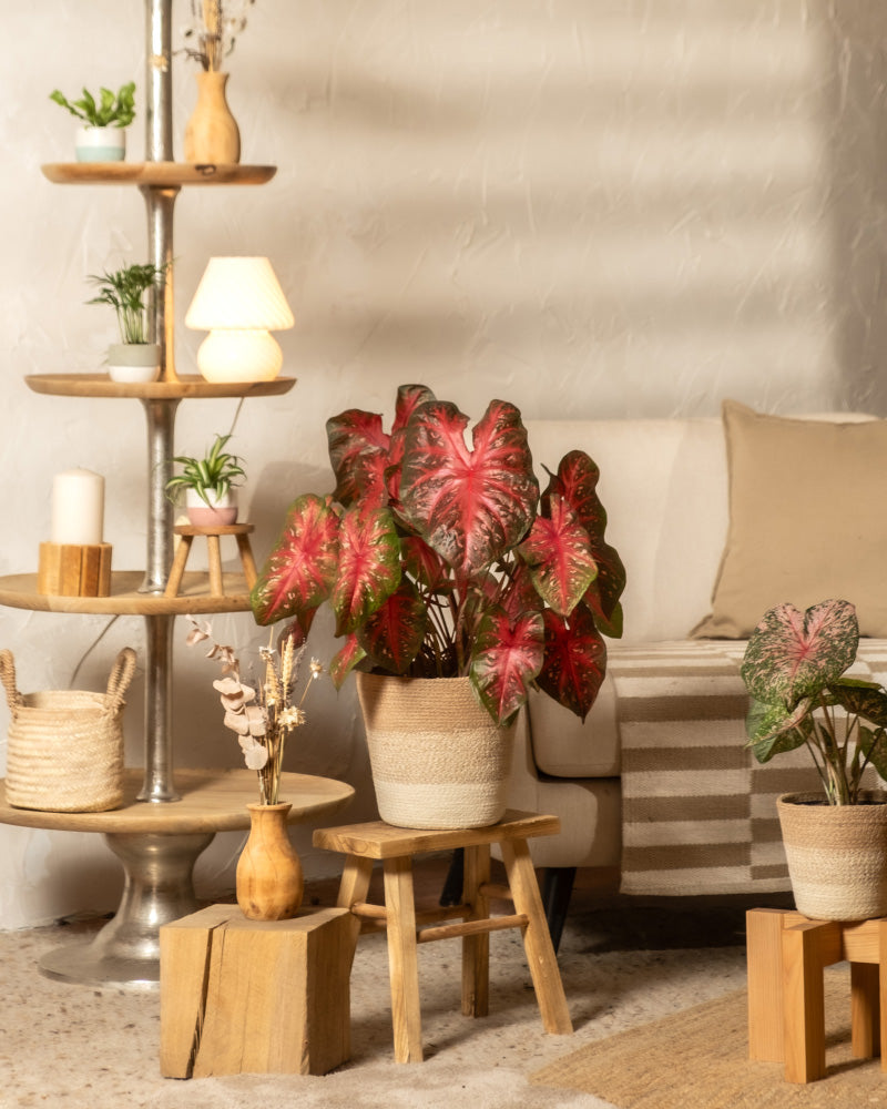 👉🏼 Caladium 'Red Flash', in einem passenden Innentopf