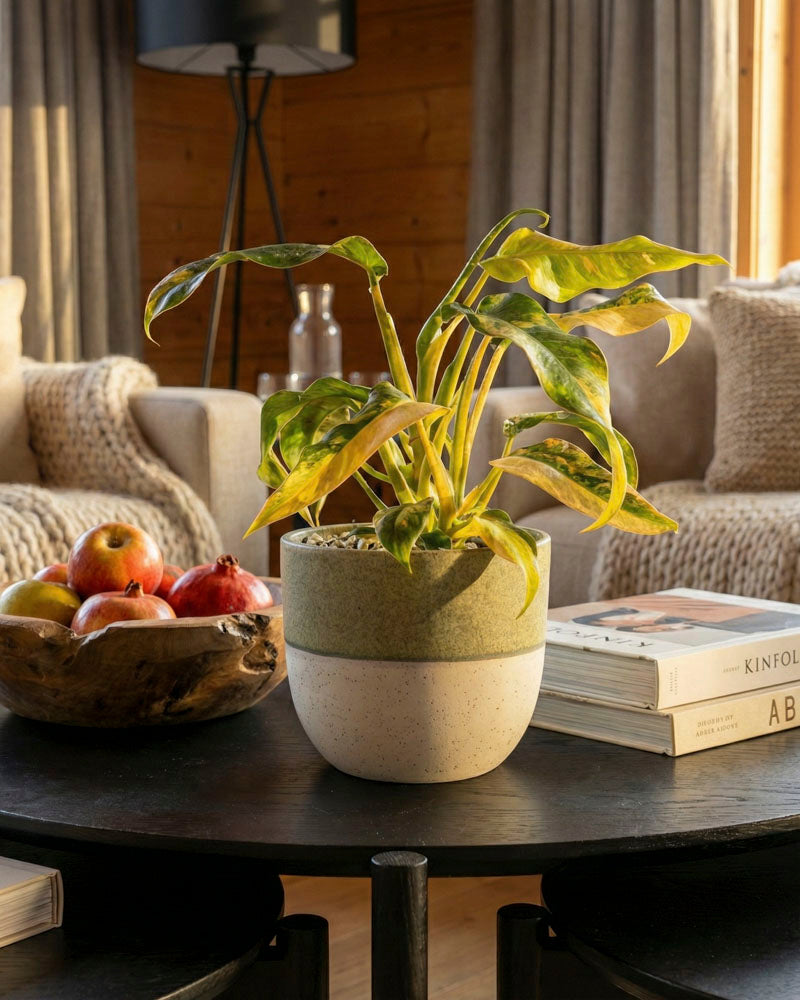 Die Monstera standleyana 'Aurea' freut sich in deiner Wohnung über einen hellen Standort ohne pralle Sonne. Ist deine Wohnung zu dunkel, kannst du deine Rarität unter eine Pflanzenlampe stellen.