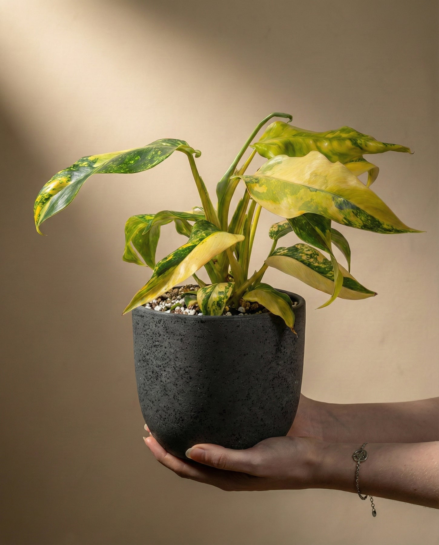 Was ist wertvoll, golden und selten? Die Monstera standleyana 'Aurea' aus der Schweiz! 💛 Ihre gold-grünen Blätter machen sie zur begehrten Rarität und dank unseres Spezialsubstrats fühlt sich dieser Schatz bei dir zuhause besonders wohl. ✨