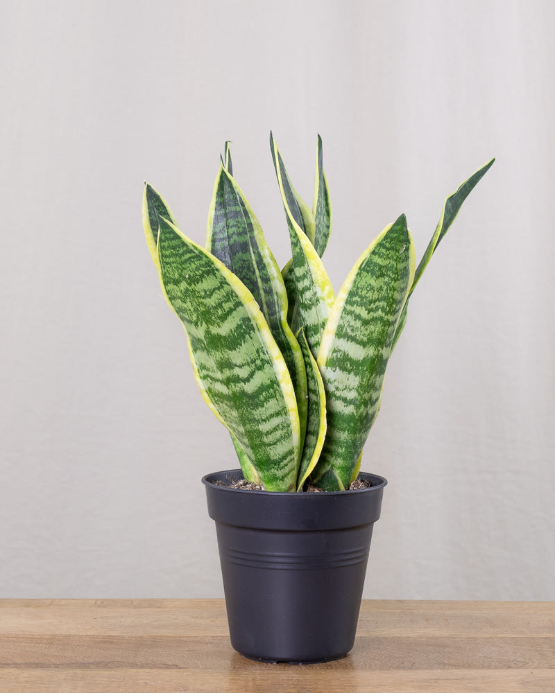 👉🏼 Schwiegermutterzunge, frisch mit Premium-Erde in einen passenden Innentopf gepflanzt