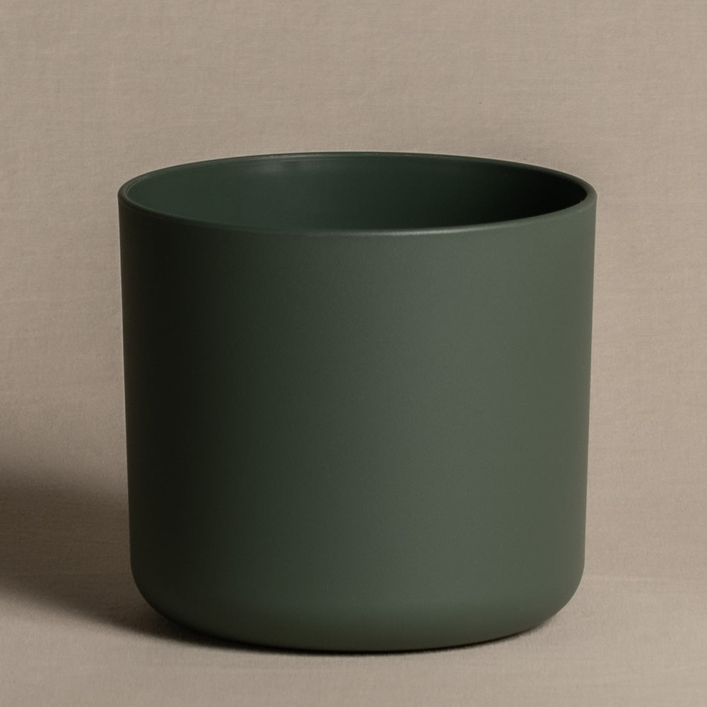 Grüner Übertopf mit 14cm Durchmesser.